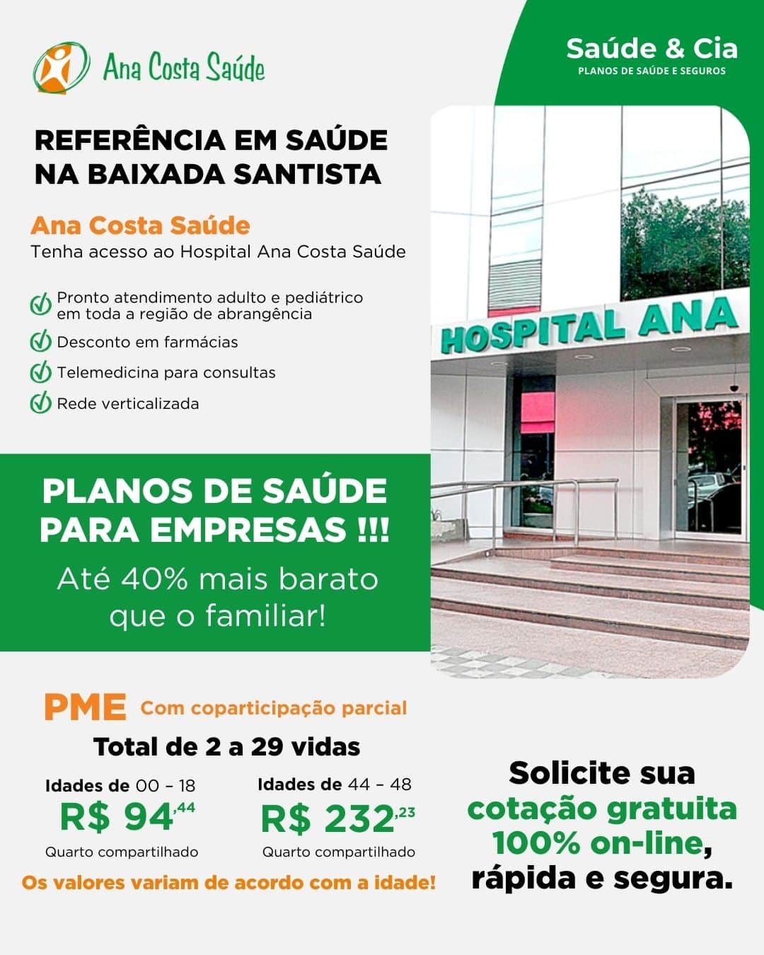 Aqui na Saúde & Cia você encontra assistência médica disponível, com planos até 40% mais barato. Adquira já seu plano MEI, ME, Contrato Social e LTDA.